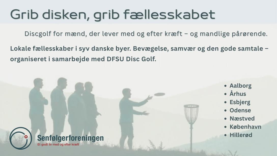 Vi etablerer lokale discgolf-fællesskaber i Aalborg, Aarhus, Esbjerg, Odense, Næstved, København og Hillerød i samarbejde med lokale discgolf-foreninger.